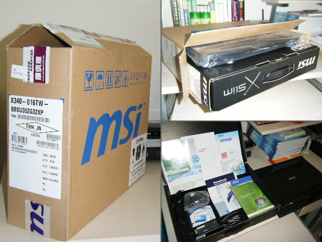 繼Intel ATOM 小筆電後,Intel 研發出CULV 平台的超輕薄筆電來對應其不同用戶需求的市場,CULV 相較於ATOM 小筆電來說,雖然也是搭載低時脈的中央處理器,但擁有更優質的效能,且筆電整體的設計更為輕薄,規格通常從11吋起跳至15吋以內,相同的地方是藉由低時脈低功耗設計來達到長時間的待機,非常適合商務外出人士使用;而在第一代CULV 平台中最讓tomy中意的就屬微星科技於2009年第三季推出的這台MSI X340 Pro ,剛推出的售價約2萬8千元,以目前來說已經是1萬6千元有找,其搭載單核心Intel Core 2 solo SU3500處理器 搭配3M快取,效能稍低於E2140和T5500,設計上有一說是模仿Apple的Macbook ,不管真相究竟如何,這款筆電仍非常吸引tomy 的目光,廢話不多說拆箱先...