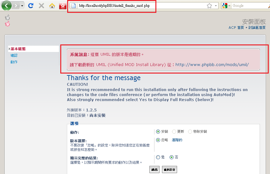 解決方法是至phpBB官方下載並安裝最新版本的UMIL