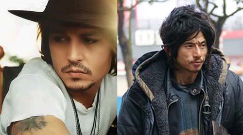 上圖:左為好萊塢帥氣性格男星強尼戴普,右為寧波帥乞丐。(圖/擷取自網路) |